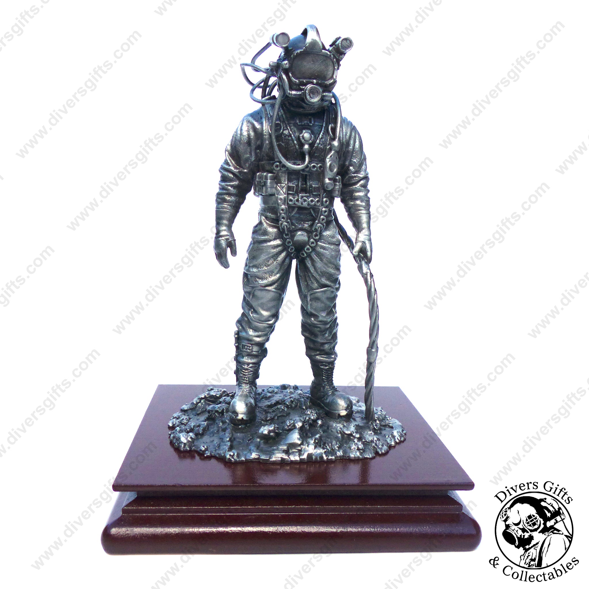 Dive into the detail with our latest addition – a stunning, handcrafted pewter statuette featuring a Commercial Diver wearing the iconic Kirby Morgan® SuperLite® diving helmet.